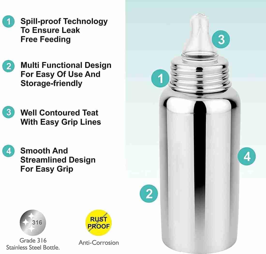 Baby Feeding Bottle Stainless Steel with Silicone Nipple